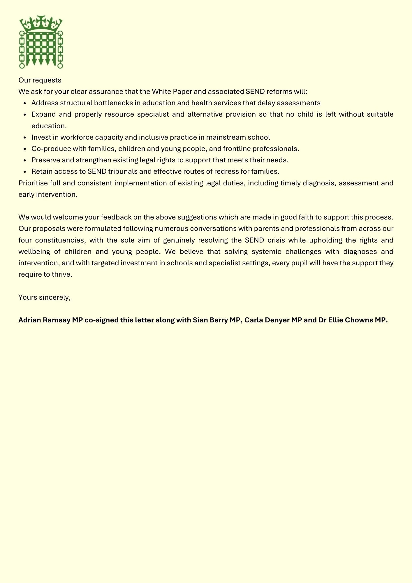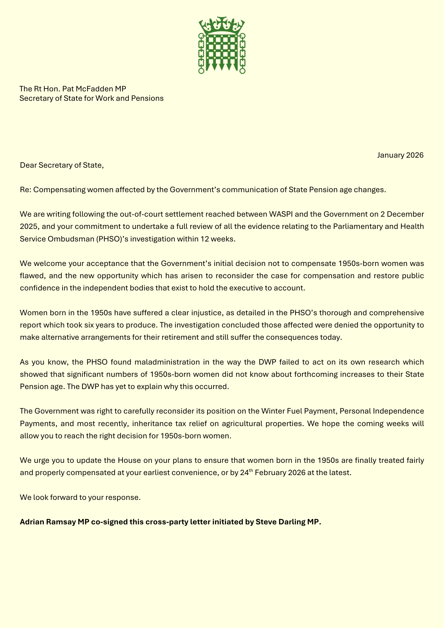 Adrian Ramsay MP co-signed this cross-party letter initiated by Steve Witherden MP.