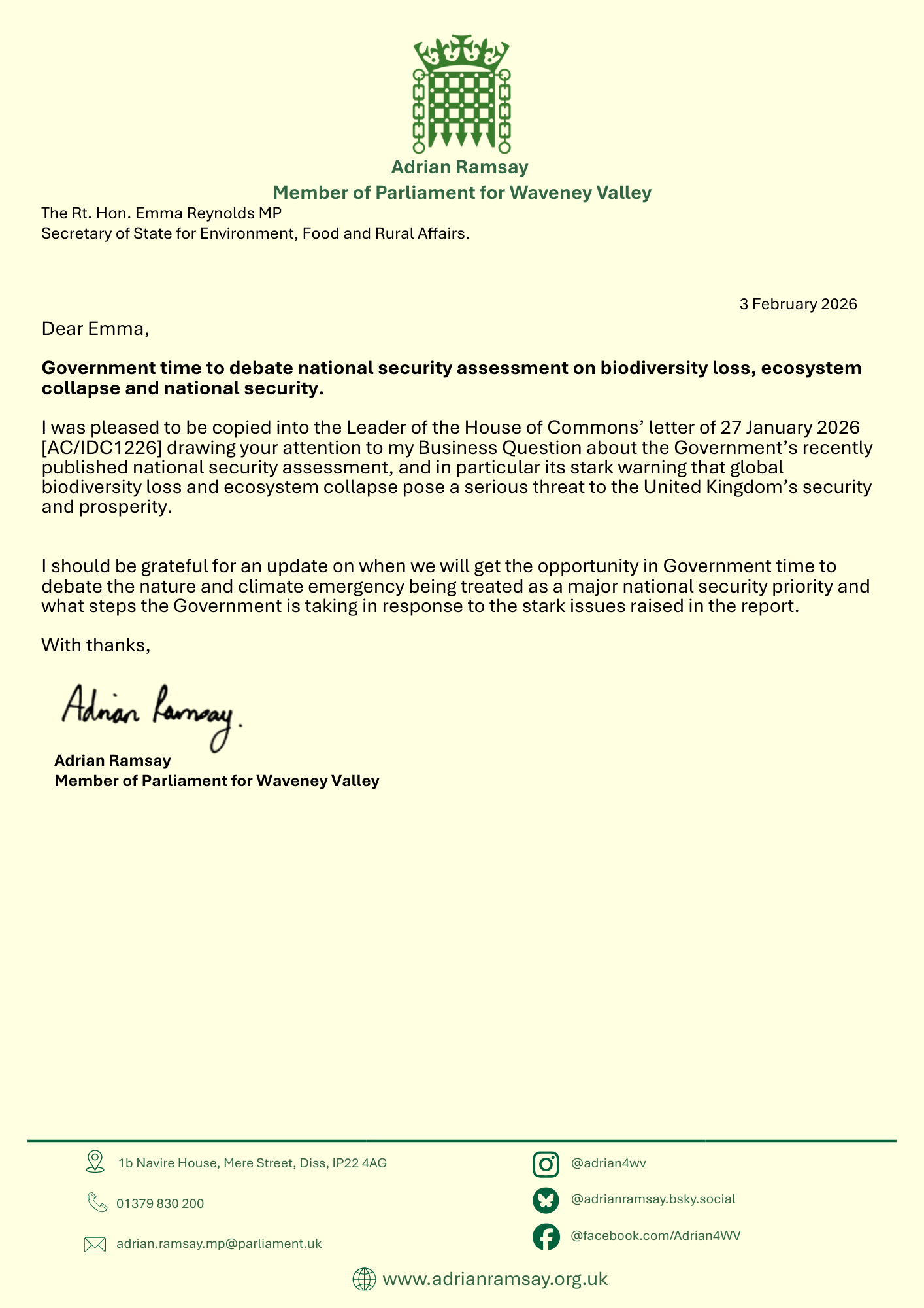 I was pleased to be copied into the Leader of the House of Commons’ letter of 27 January 2026