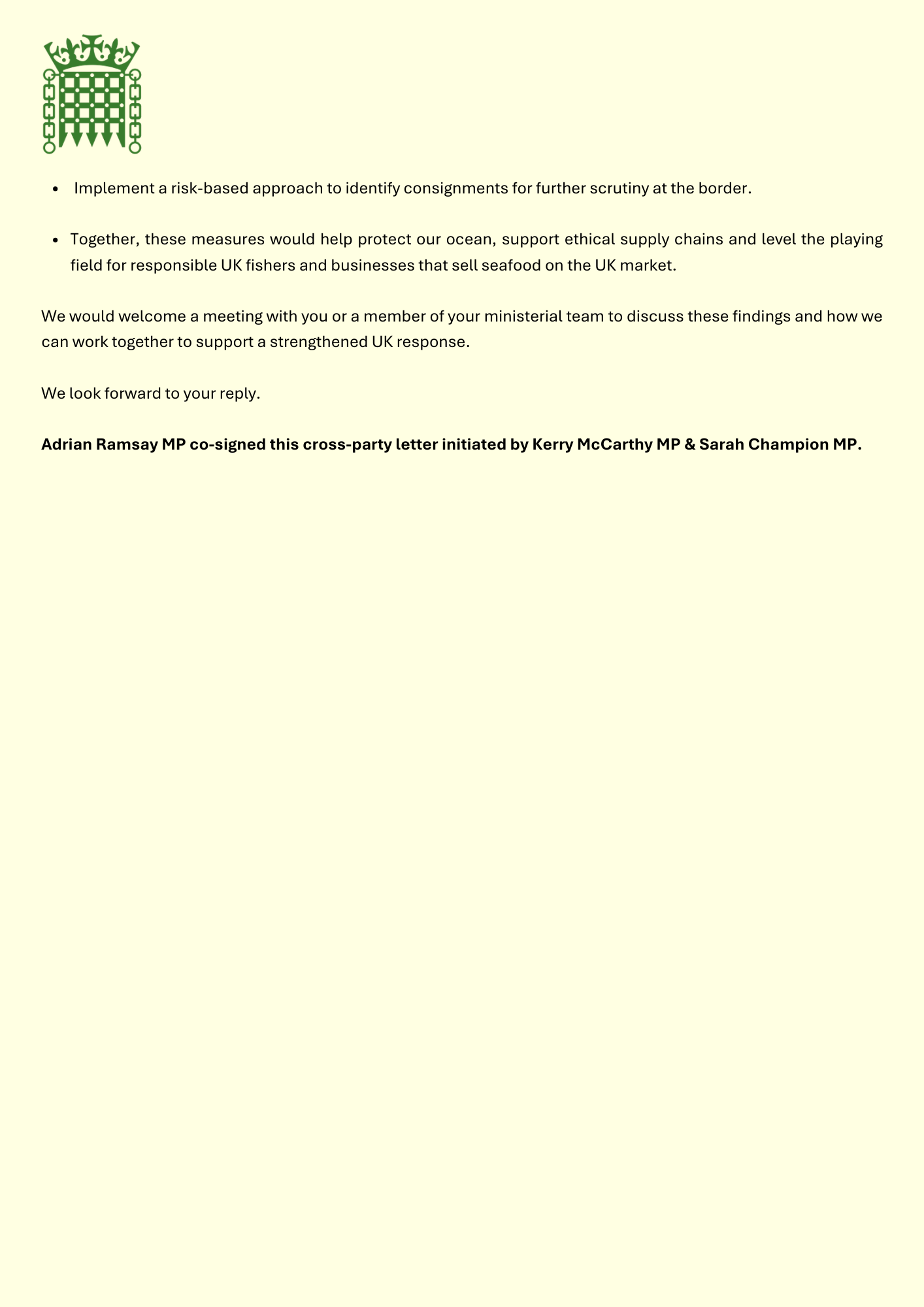 Adrian Ramsay MP co-signed this cross-party letter initiated by Kerry McCarthy MP & Sarah Champion MP.