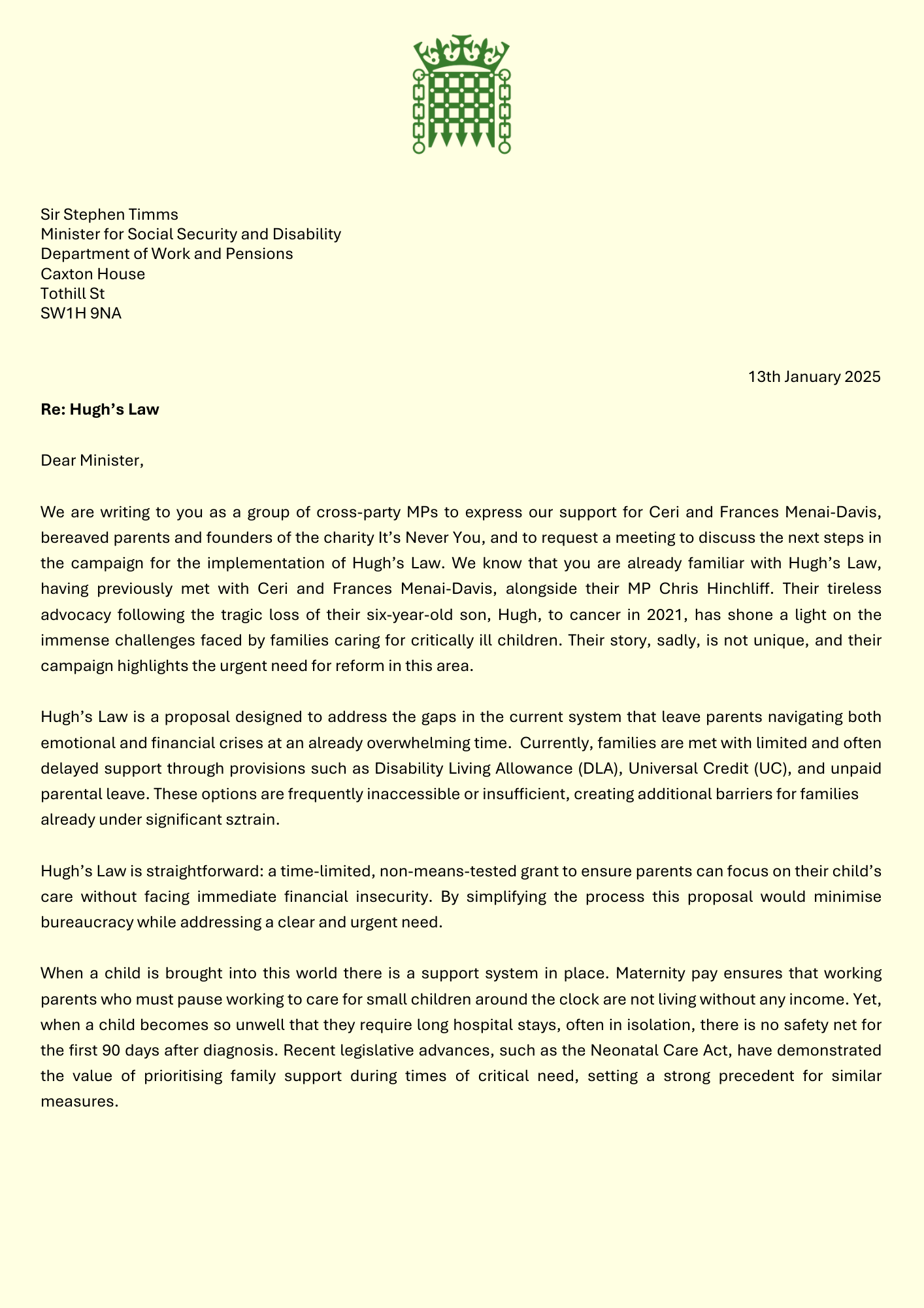 We are writing to you as a group of cross-party MPs to express our support for Ceri and