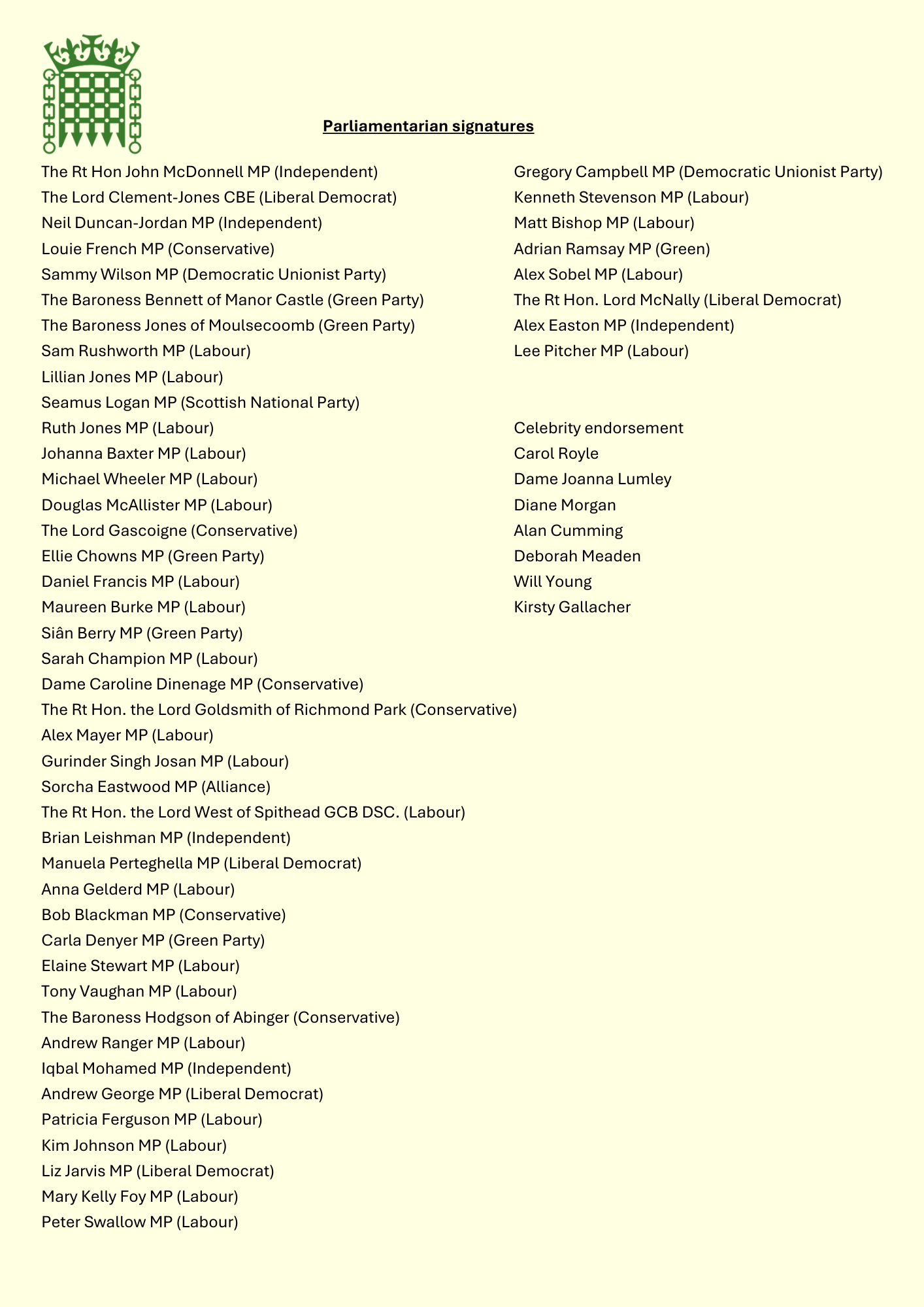 Parliamentarian signatures